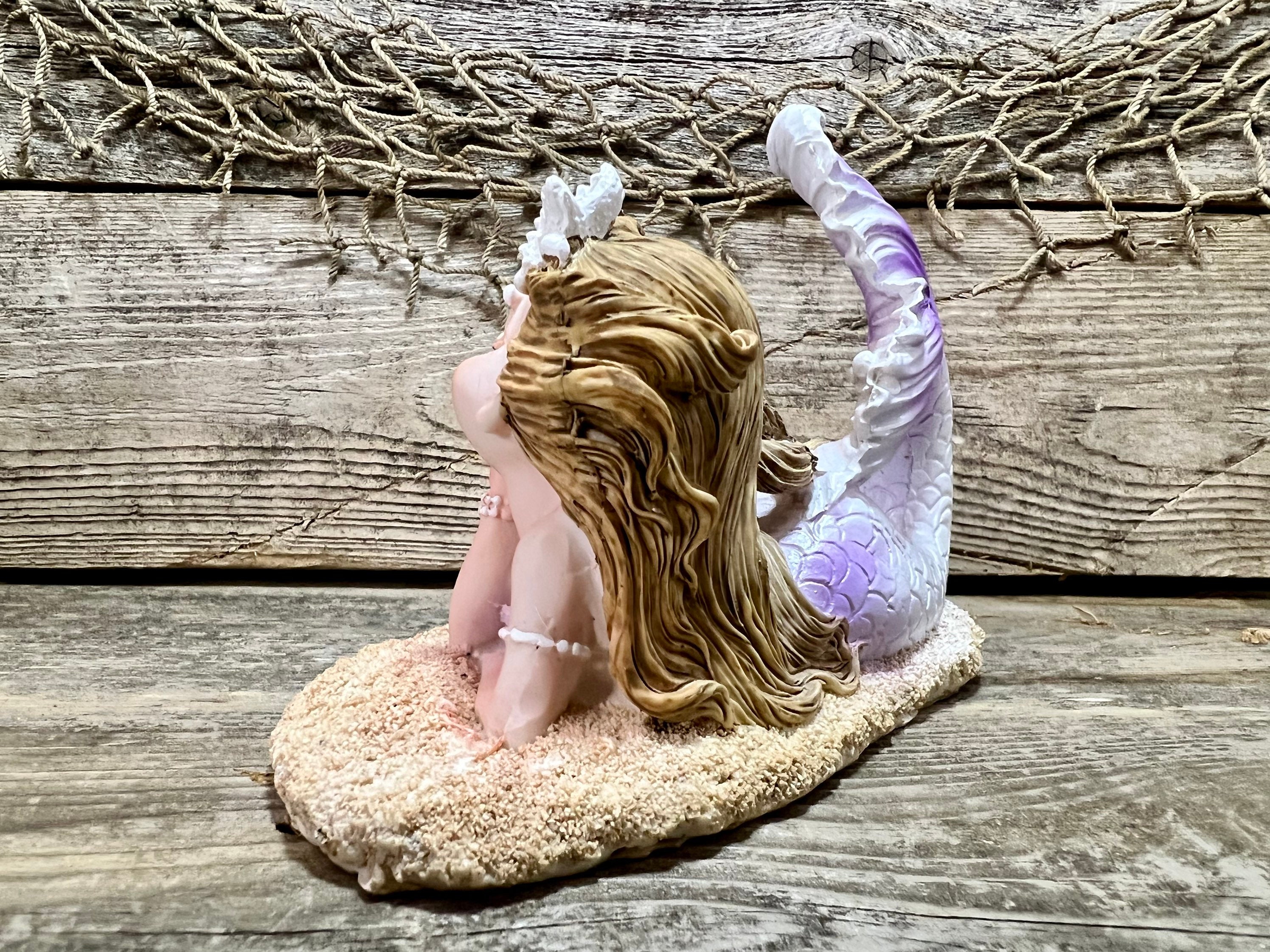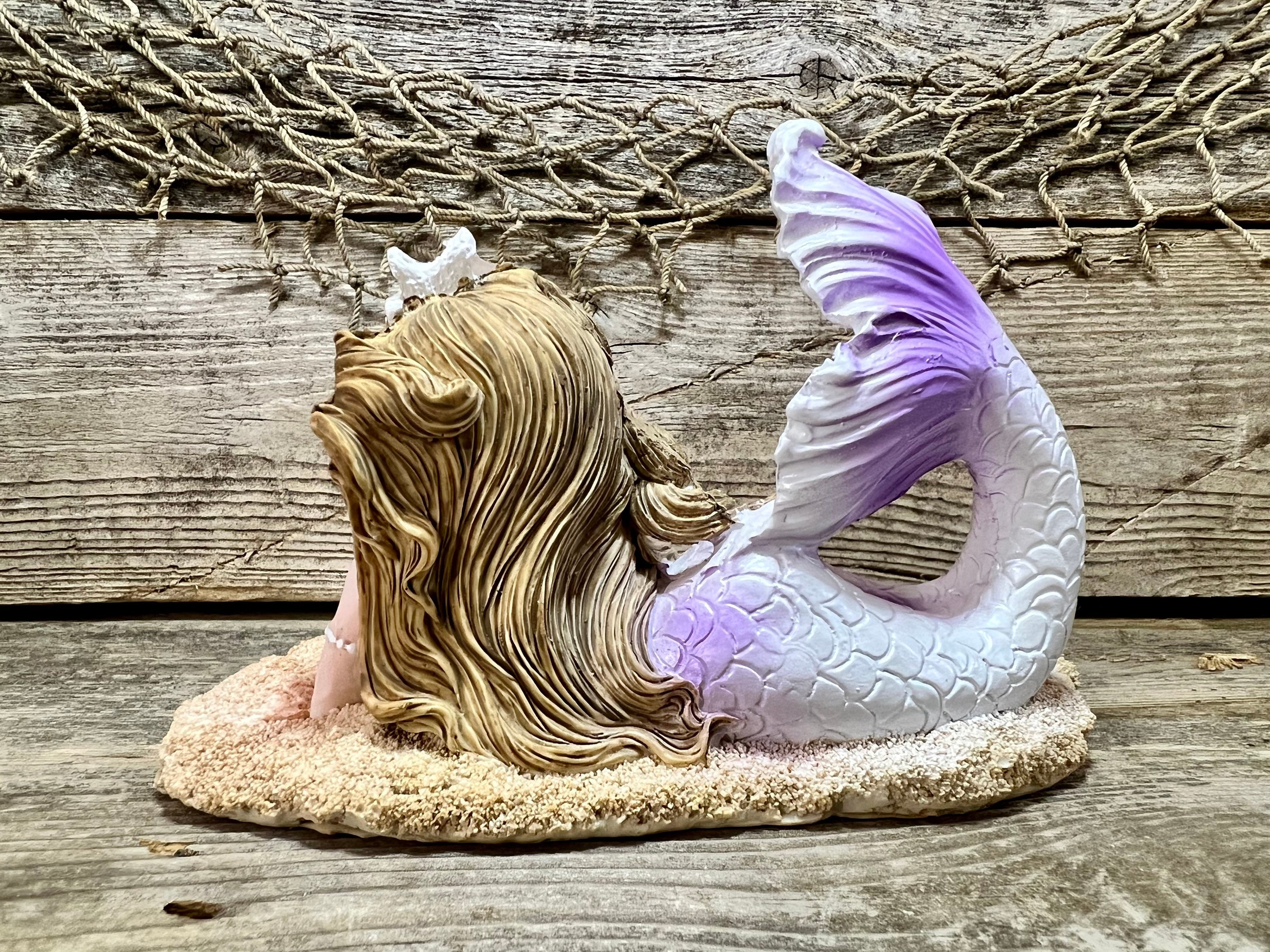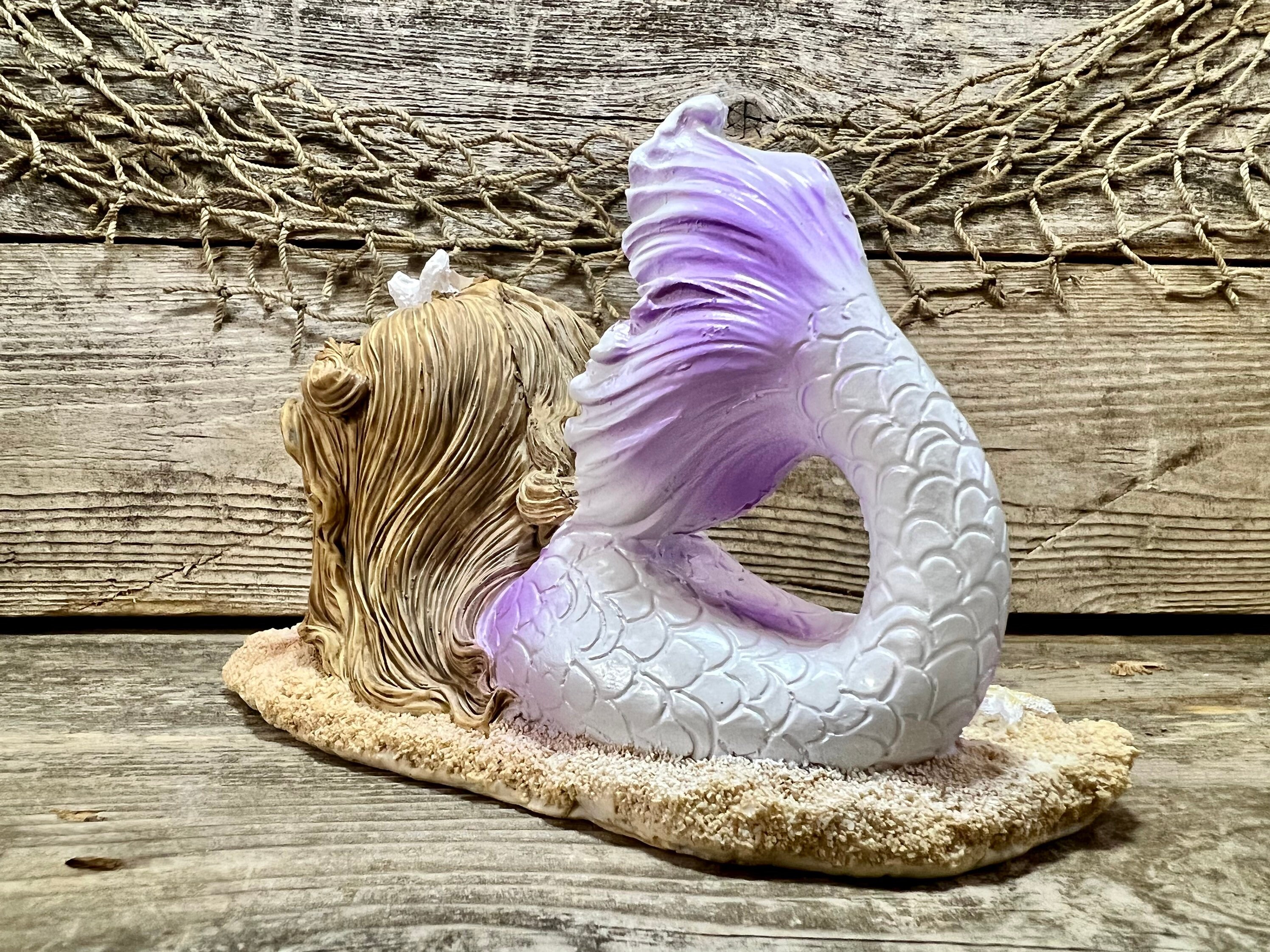#beach #coastal #nautical #decor #beachdecor #coastaldecor #nauticaldecor #beachhouse #ocean #sea #sealife #seahells #starfish #sandybeach #auburnhair #mermaid #mermaidtail #mermaidprincess #fantailmermaid #purple #lavender #figurine #gift