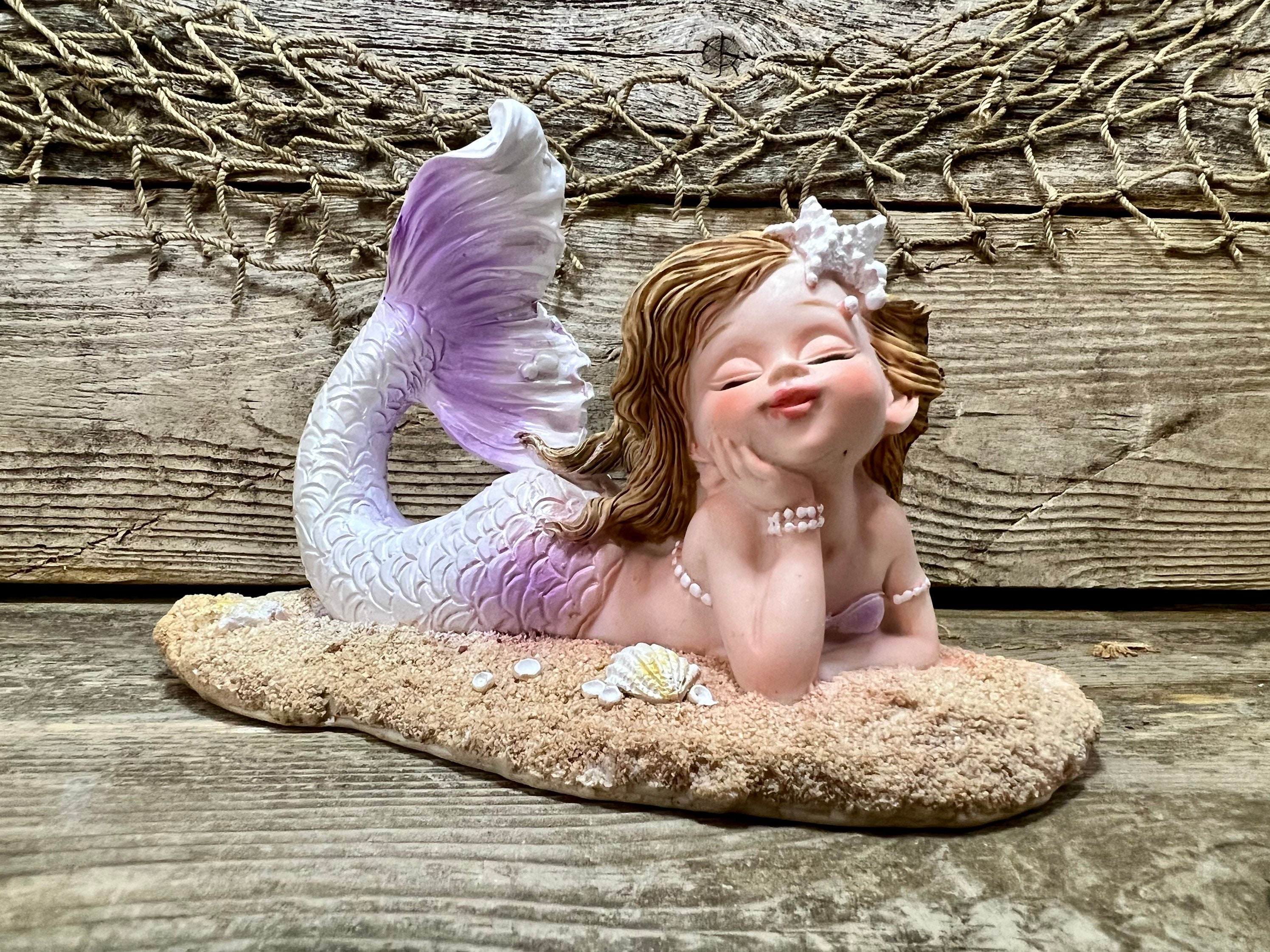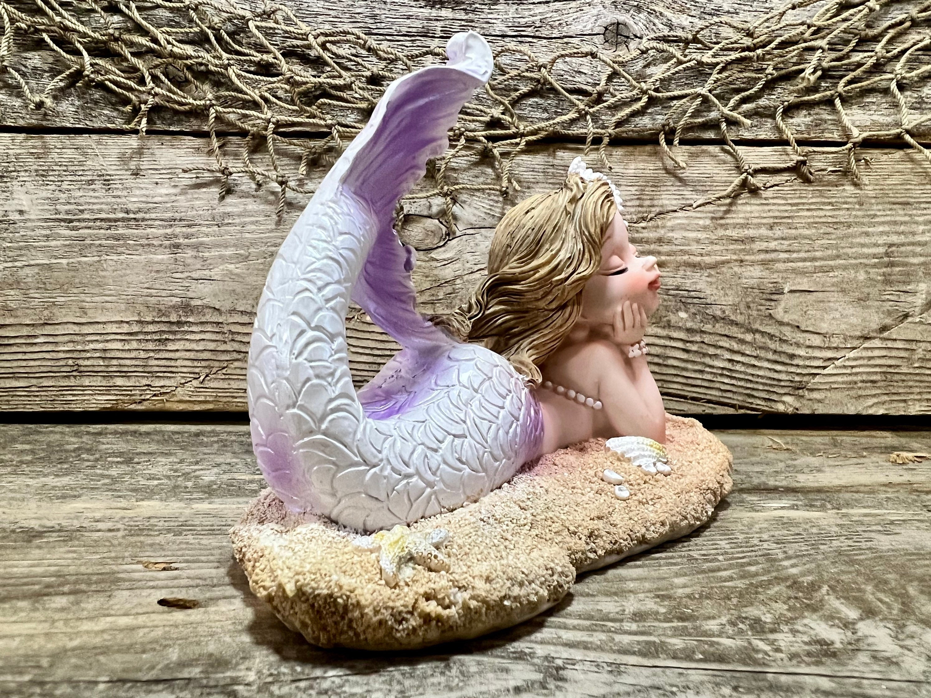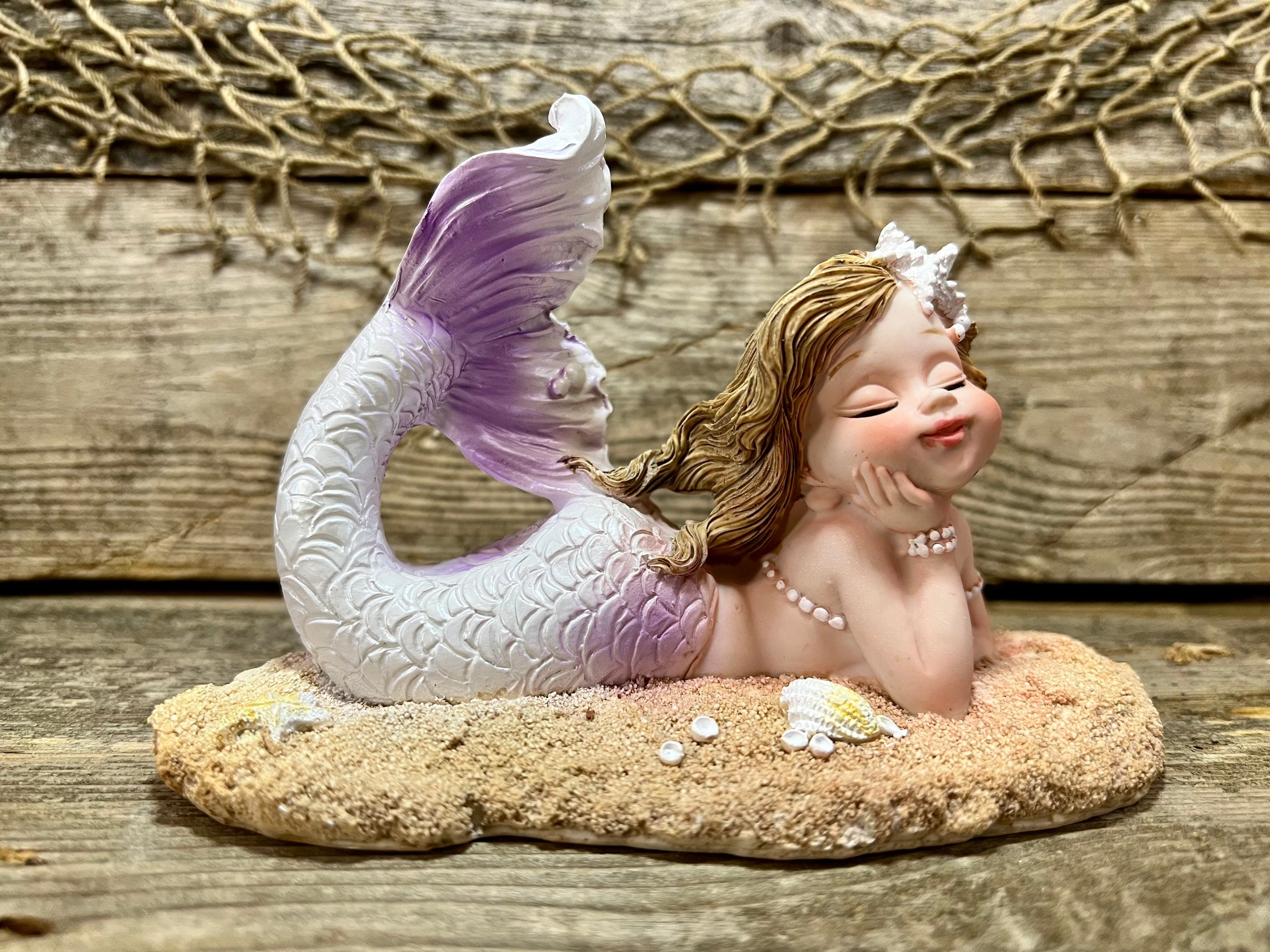 #beach #coastal #nautical #decor #beachdecor #coastaldecor #nauticaldecor #beachhouse #ocean #sea #sealife #seahells #starfish #sandybeach #auburnhair #mermaid #mermaidtail #mermaidprincess #fantailmermaid #purple #lavender #figurine #gift