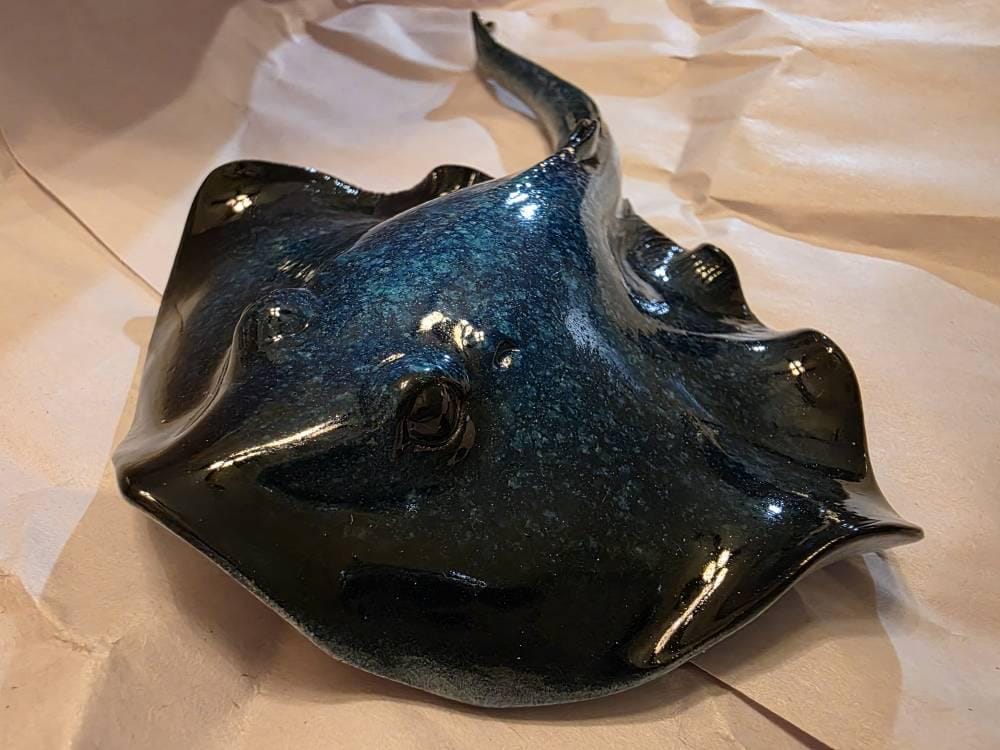 6 1/2” L x 4 3/4” W x 3/4” H Intricately Detailed Polyresin Tabletop Blue Stingray Figurine