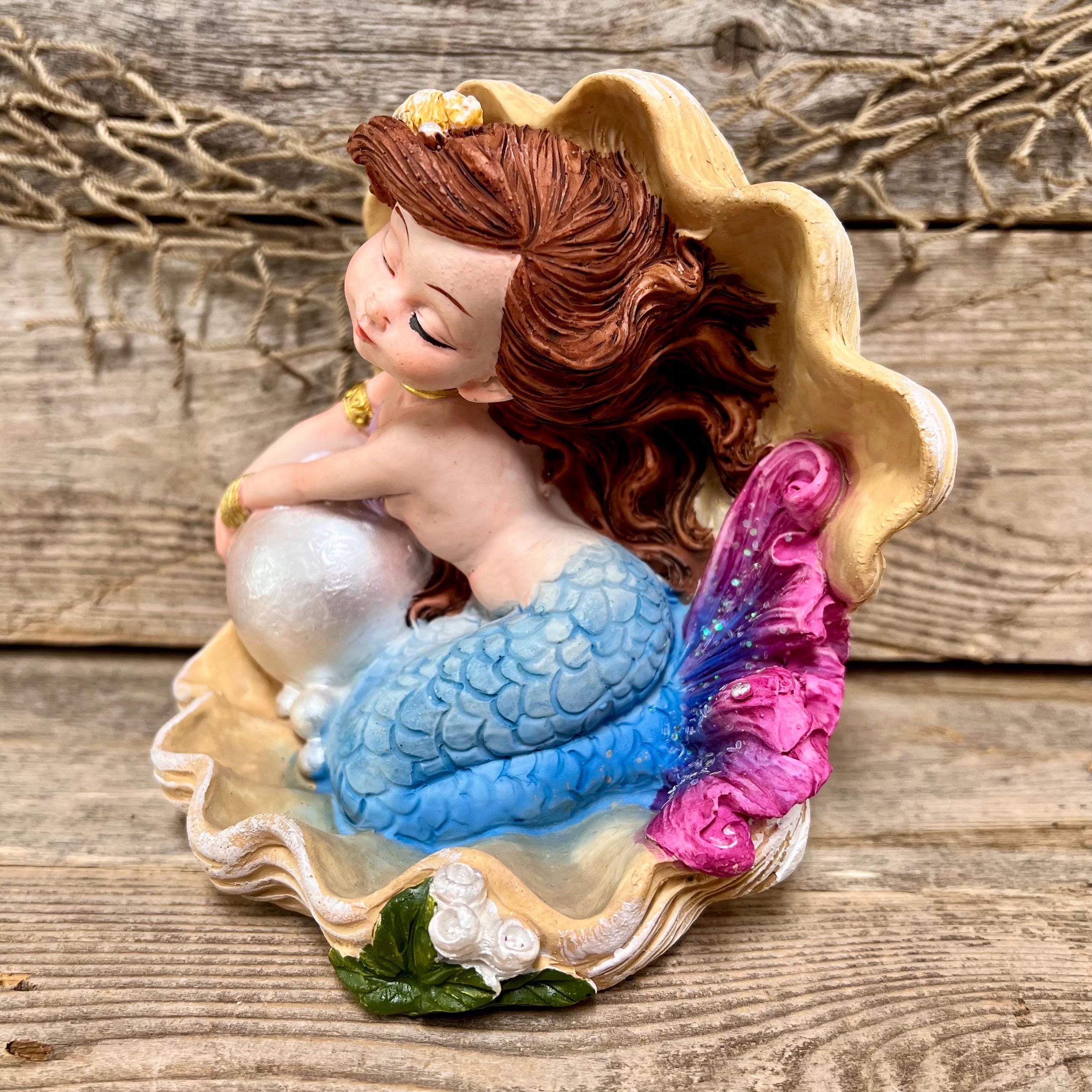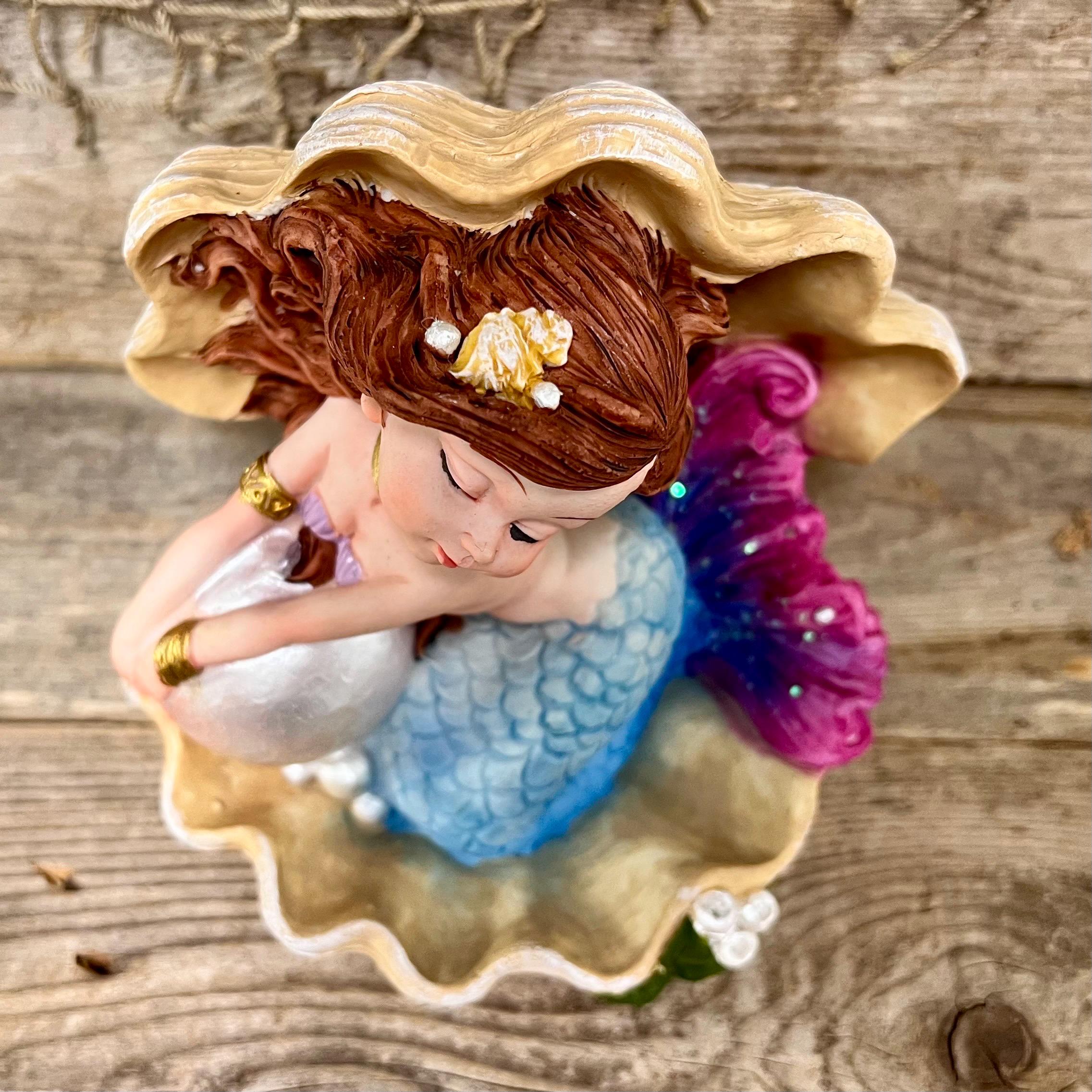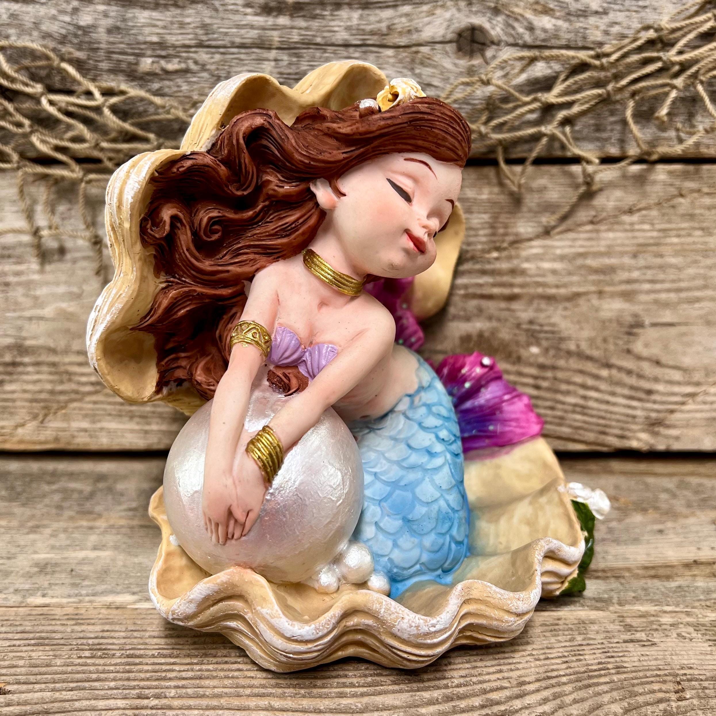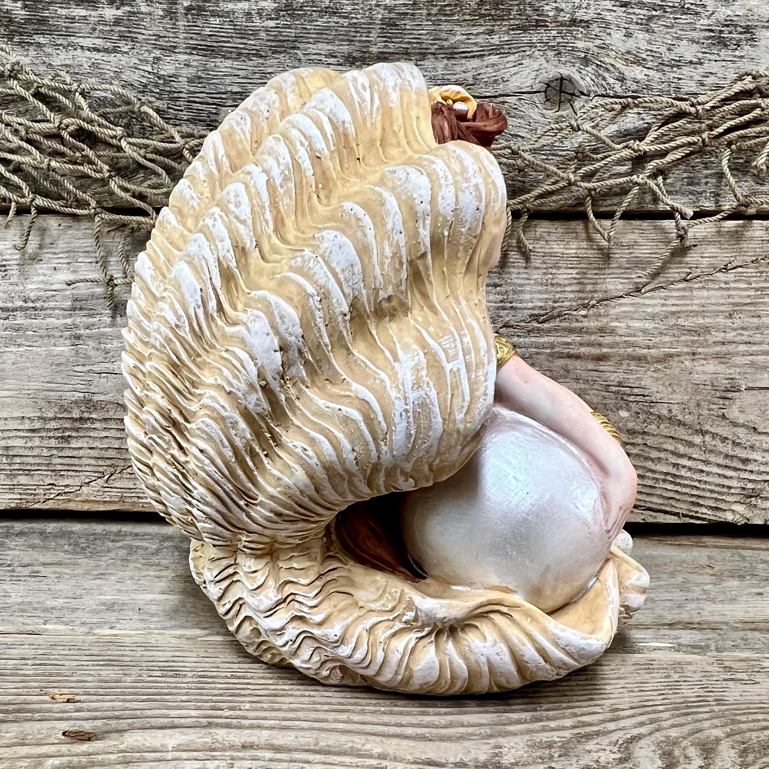#beach #coastal #nautical #decor #beachdecor #coastaldecor #nauticaldecor #beachhouse #ocean #sea #sealife #blue #seashell #pearl #clamshell #mermaid #mermaidtail #tabletop #statuette #statue #figurine #gift