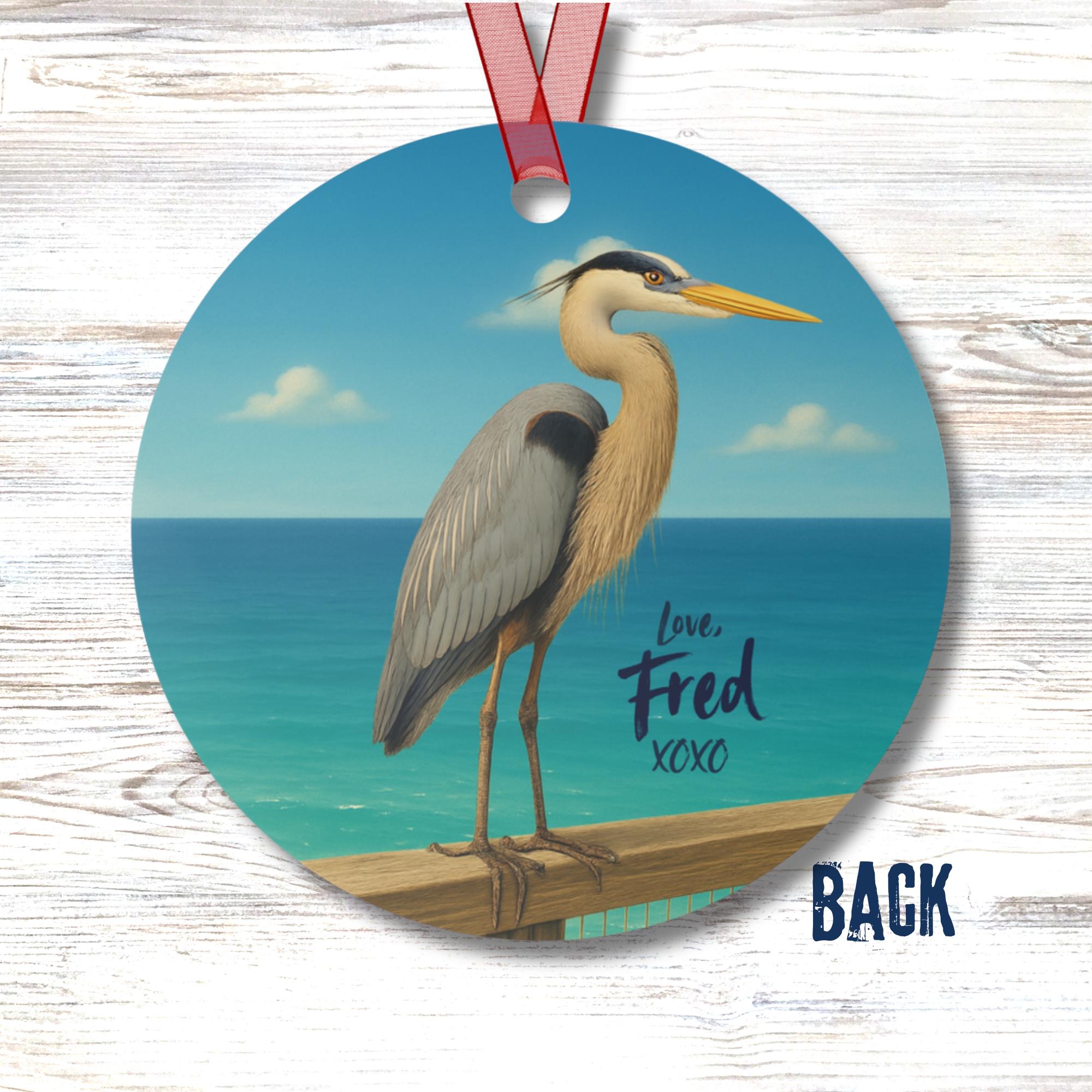 Locals know him, visitors remember him — Fred the heron rules the pier like he owns it. This Navarre Pier Heron Ornament captures his calm coastal attitude with a touch of humor, featuring his signature Love, Fred XOXO right on the design. It’s the perfect coastal keepsake for anyone who’s ever spotted Fred or just loves beach life with personality.