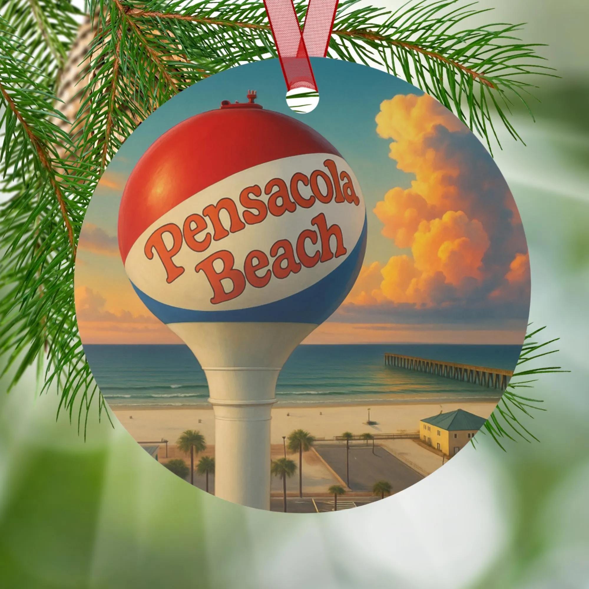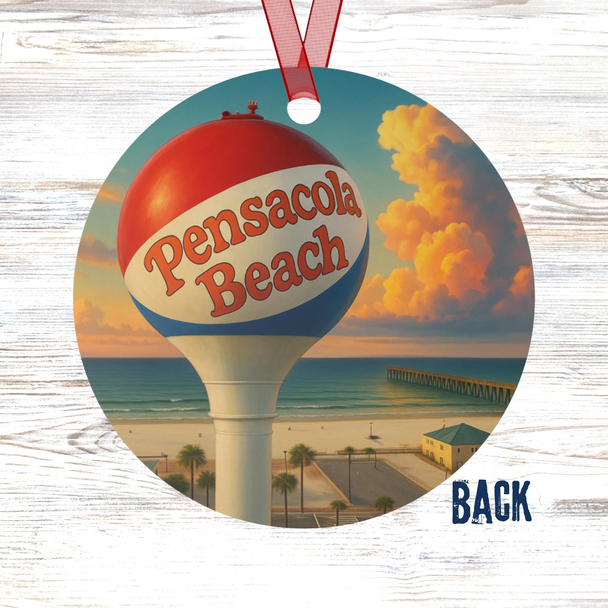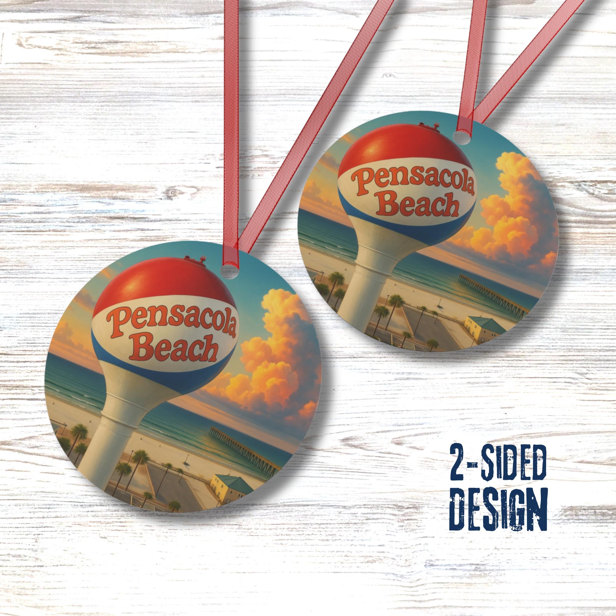A bright coastal scene inspired by Pensacola’s sunny shoreline, this double-sided ornament features original artwork celebrating the color and energy of Florida’s Gulf Coast. A cheerful keepsake for locals, visitors, and anyone who loves the beach.